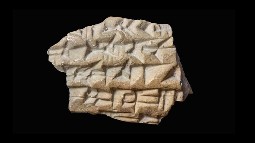 Die 2,5 Zentimeter große Scherbe ist mit einer Gravur in Keilschrift versehen. Auf Akkadisch – der damaligen Sprache Assyriens – forderte der assyrische König demnach Juda zu Tributzahlungen auf. Die Angabe einer Frist deutet auf vorhergehende Zahlungsverzögerungen hin.
