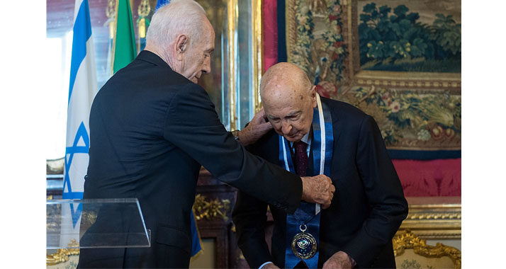 ROM (inn) – Schimon Peres hat am Sonntag den Orden des israelischen Staatspräsidenten an das italienische Staatsoberhaupt Giorgio Napolitano verliehen. Bei der Zeremonie in Rom würdigte er dessen klare Haltung zugunsten der Sicherheit des Staates Israel über die Jahre hinweg.