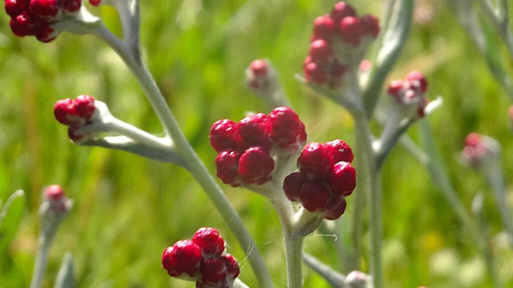 Die einzige Strohblume in Israel hat ihren hebräischen Namen von einem Aufstand gegen hellenistische Fremdherrschaft. Die rote Hülle der Blüten erinnert an Blutstropfen.