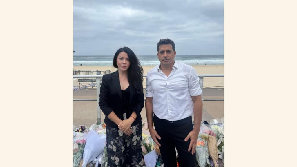 Diaspora-Minister Schikli betet am Anschlagsort in Sydney
