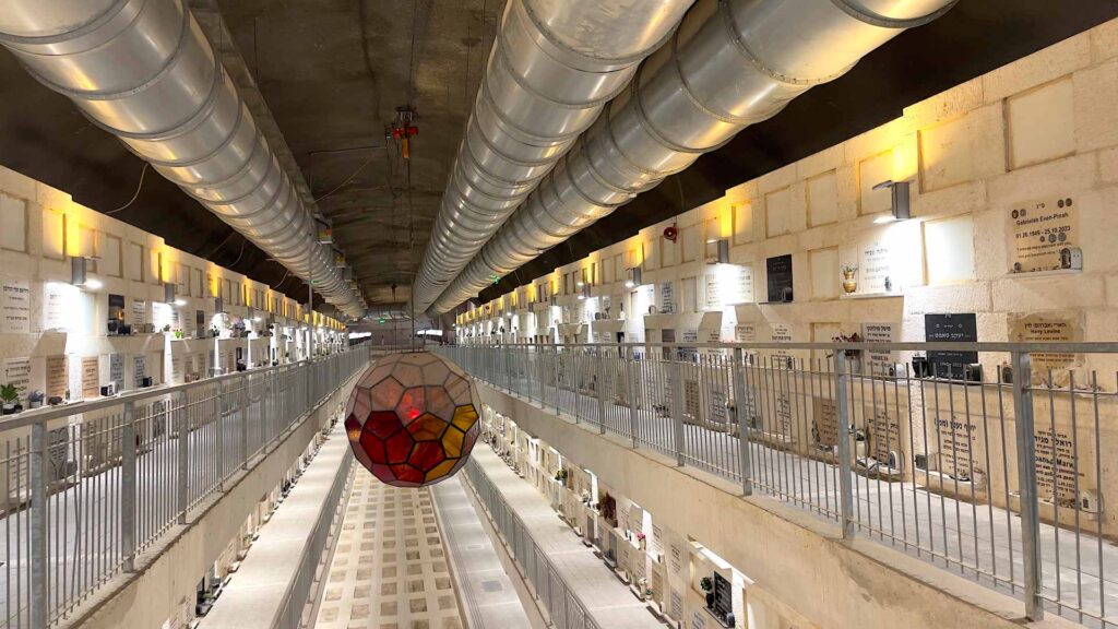 In Givat Scha‘ul liegt die Lösung des Platzmangels in der Tiefe, im Innern des Berges. Von Totenstille kann keine Rede sein, denn Tunnelbauer bohren weitläufige Höhlen, die sich bis zu 45 Meter in die Erde erstrecken, um Platz für zusätzliche 22.000 Gräber zu schaffen. Emsig wird zudem an weiteren Terrassen gebaut, Fahrstühle sollen die Höhenunterschiede überwinden, die Plateaus bequem zugänglich machen.