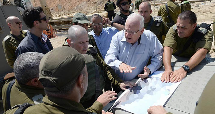 Zivilisiertes Gespräch: Staatspräsident Rivlin unterhält sich mit Militärs am Gazastreifen